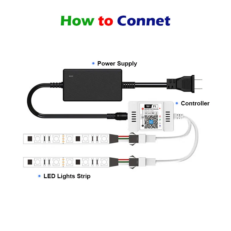 You will find explanations and pictures on how to connect LED strips and related products Here.