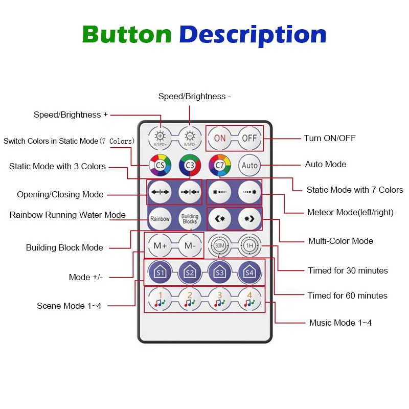 3. The lighting changes with the rhythm of the external music according to the effects of modes 1-4