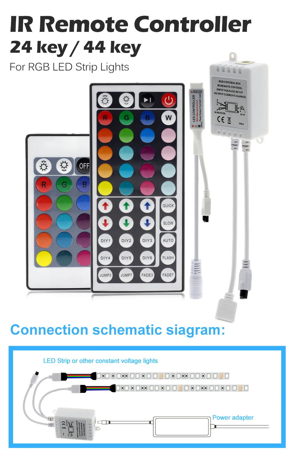 2 reviews for RGB DC12V Mini 44/24 Key IR Remote Controller