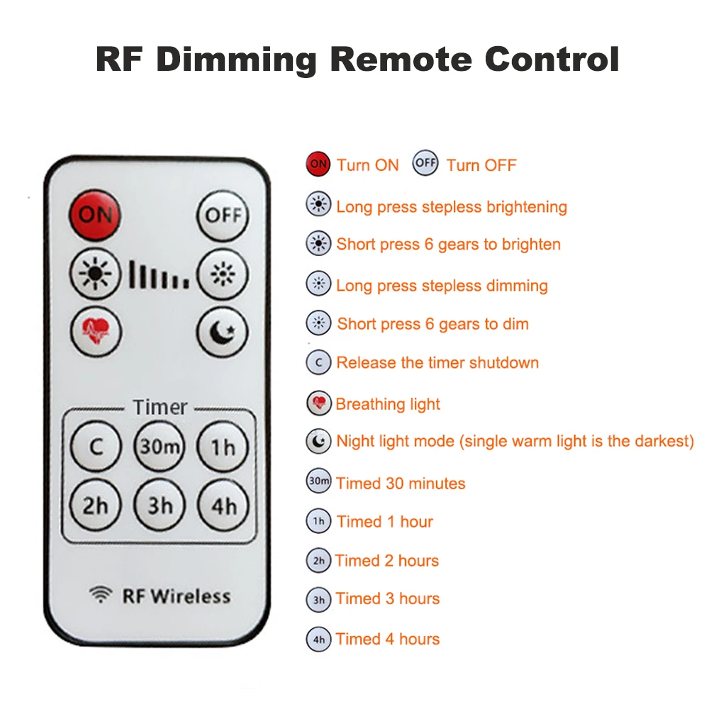 Function: Turn on/turn off/brighten/dim/timed shutdown/release timed shutdown/breathing light/night light mode